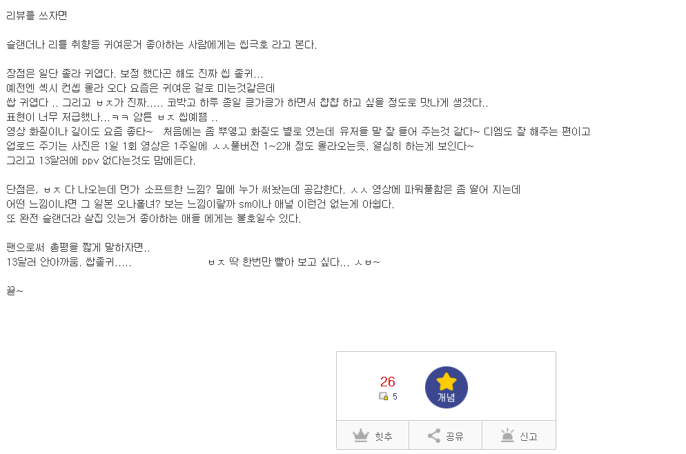DM 대답도 잘하는편이라고 하고 무엇보다 PPV(pay per view, 구독과 별개로 돈내고 영상을 보는것)이 없다고 한다.