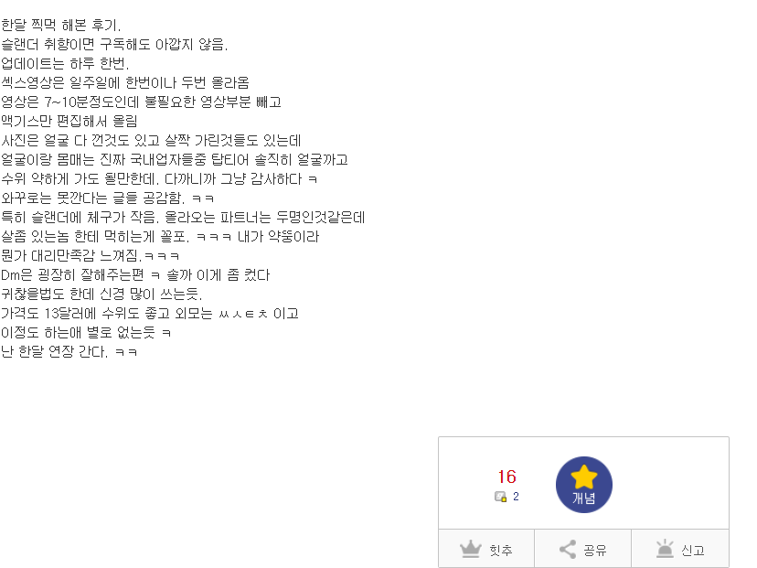 업데이트는 하루 한번, ㅅㅅ영상은 일주일에 한두번 올라온다고 한다.