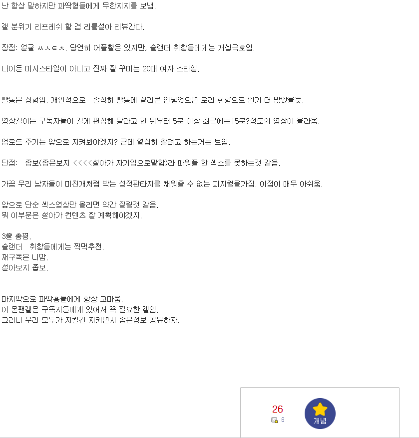 또다른 리뷰 역시 슬렌더 취향의 사람에게 추천한다고 하며